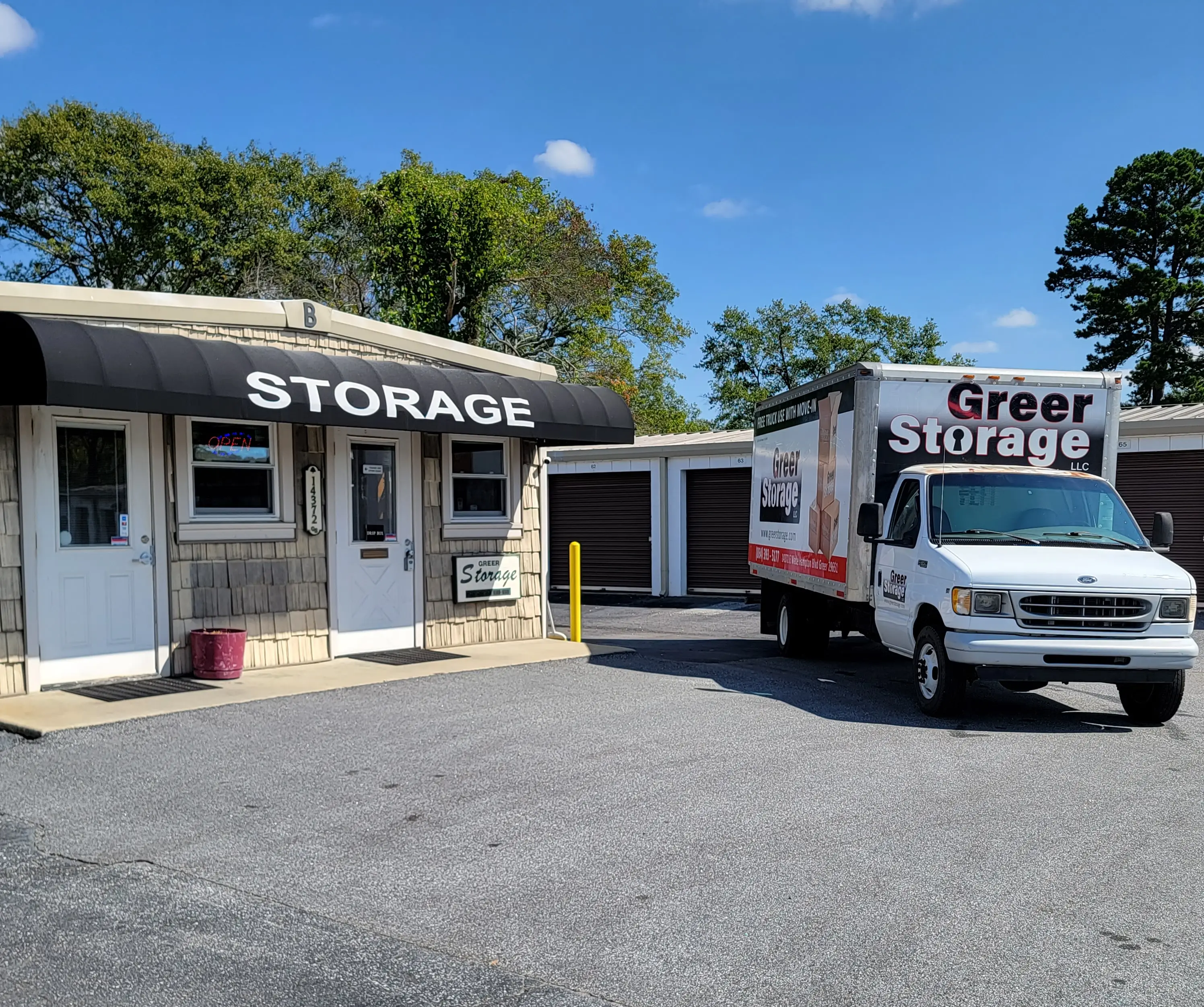 Our Greer self storage facility at 14372 E. Wade Hampton Blvd, Greer, SC 29651 is centrally located to conveniently serve the neighborhoods of Greer, Lyman, Duncan, and Taylors. We are located across from KIA of Greer, behind Value Point Auto, and in between Tipsy Tacos and Copper River. We have 240 units secured within an electronic access gate and 24- hr video surveillance. You'll enjoy quick and easy drive-up access to your storage unit. Access is available to each unit every day, even when our office is closed. We also have units with 24 hour access located on Chucks Drive in Duncan, SC. Our 14372 E. Wade Hampton Blvd self storage location in Greer has storage managers who are ready to help you select the right storage space for your needs. Our storage managers can give you tips on the best ways to pack your goods for safety, to get the most into the smallest space, and counsel you on how to protect your property. As members of the Trusted Movers Network, we can give you a free quote for any move and book your entire move through our Trusted Movers Network at a discounted rate!